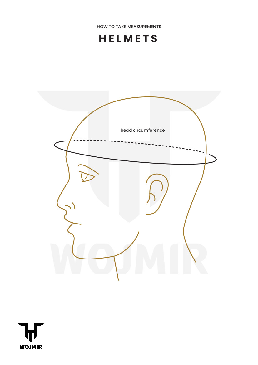Zmierz obwód głowy w czapie pikowanej, zgodnie z instrukcją na zdjęciu. Wykonaj pomiar luźno. Pamiętaj, że wybierając rozmiar hełmu np. 66cm wysyłam hełm o obwodzie wewnętrznym 66cm, nie doliczam żadnego zapasowego miejsca. Ty decydujesz o rozmiarze. Umieść też informacje w uwagach o obwodzie gołej głowy. Jeśli wybierzesz dodatkowo wyściółkę skórzaną, dolicz +2cm. PRZYKŁAD: obwód gołej głowy 59cm, obwód głowy w czapie 64cm, + 2cm wyściółka skórzana, razem 66cm. W takim przypadku wybierz rozmiar 66cm.