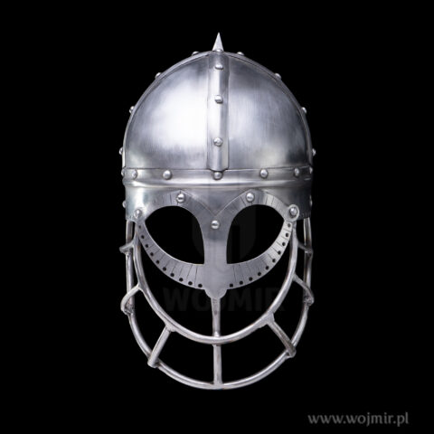 Hełm z Lednicy (z jeziora lednickiego), wykonany ze stali o grubości 2,5mm. Posiada maskę ochronną na twarz wykonaną z grubych prętów. Świetnie nadaje się do rekonstrukcji historycznej wczesnego średniowiecza. Hełm wykonany w całości według znaleziska.