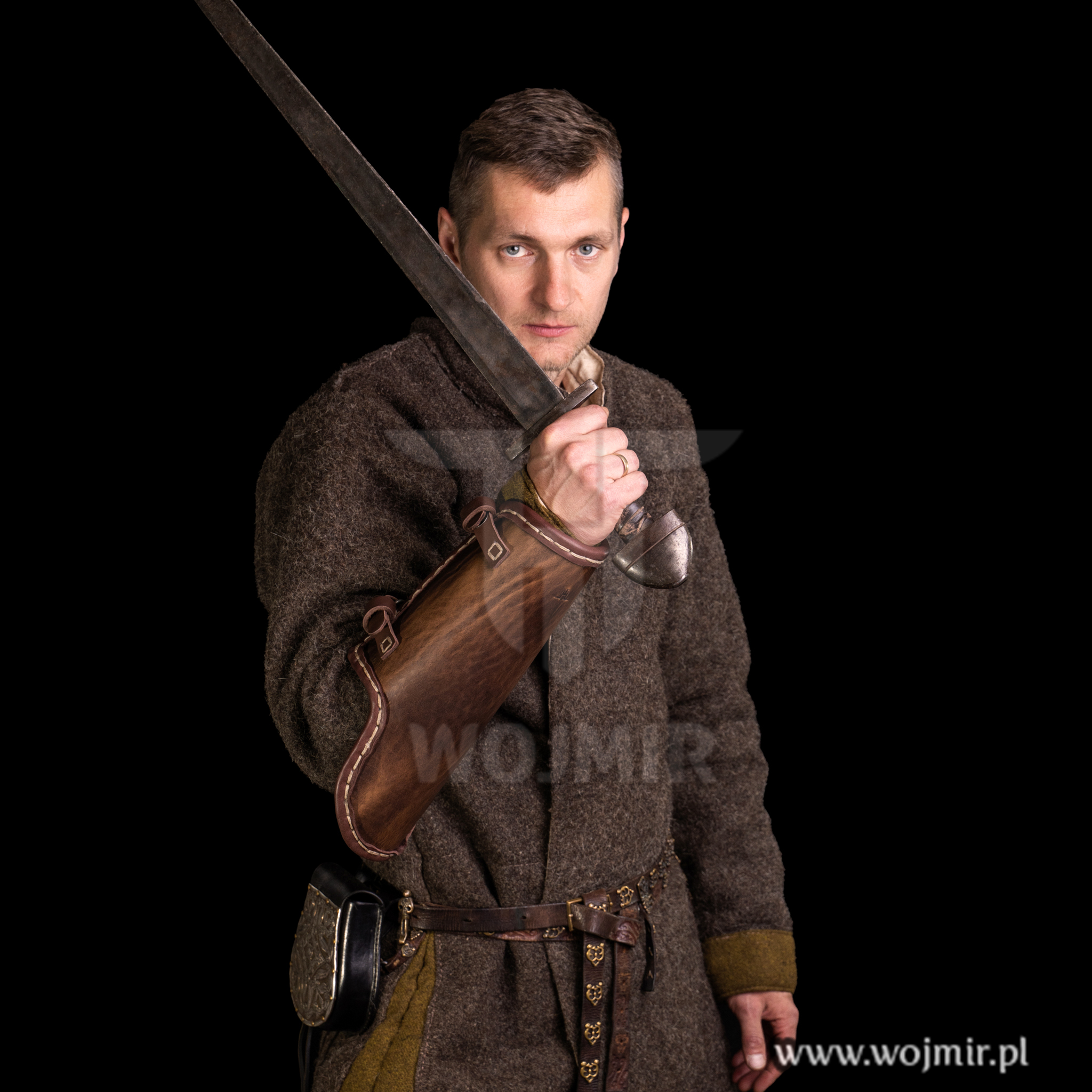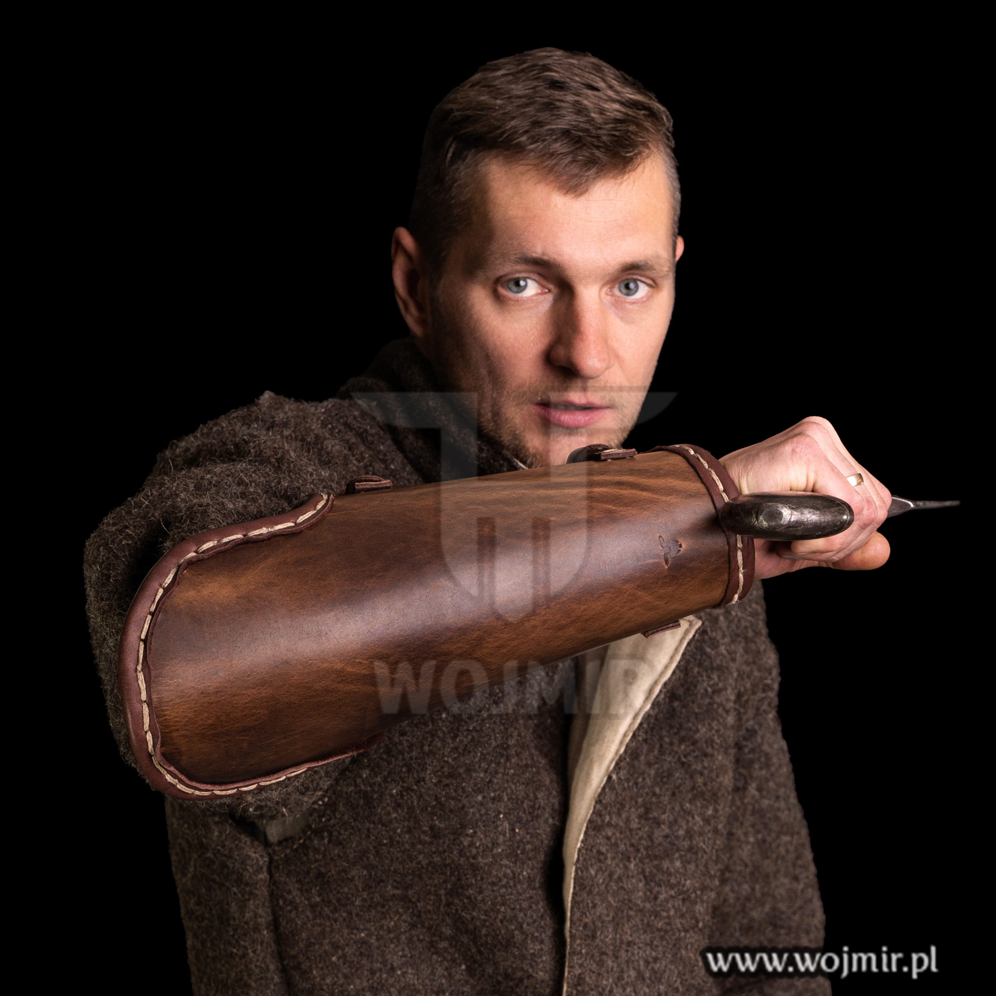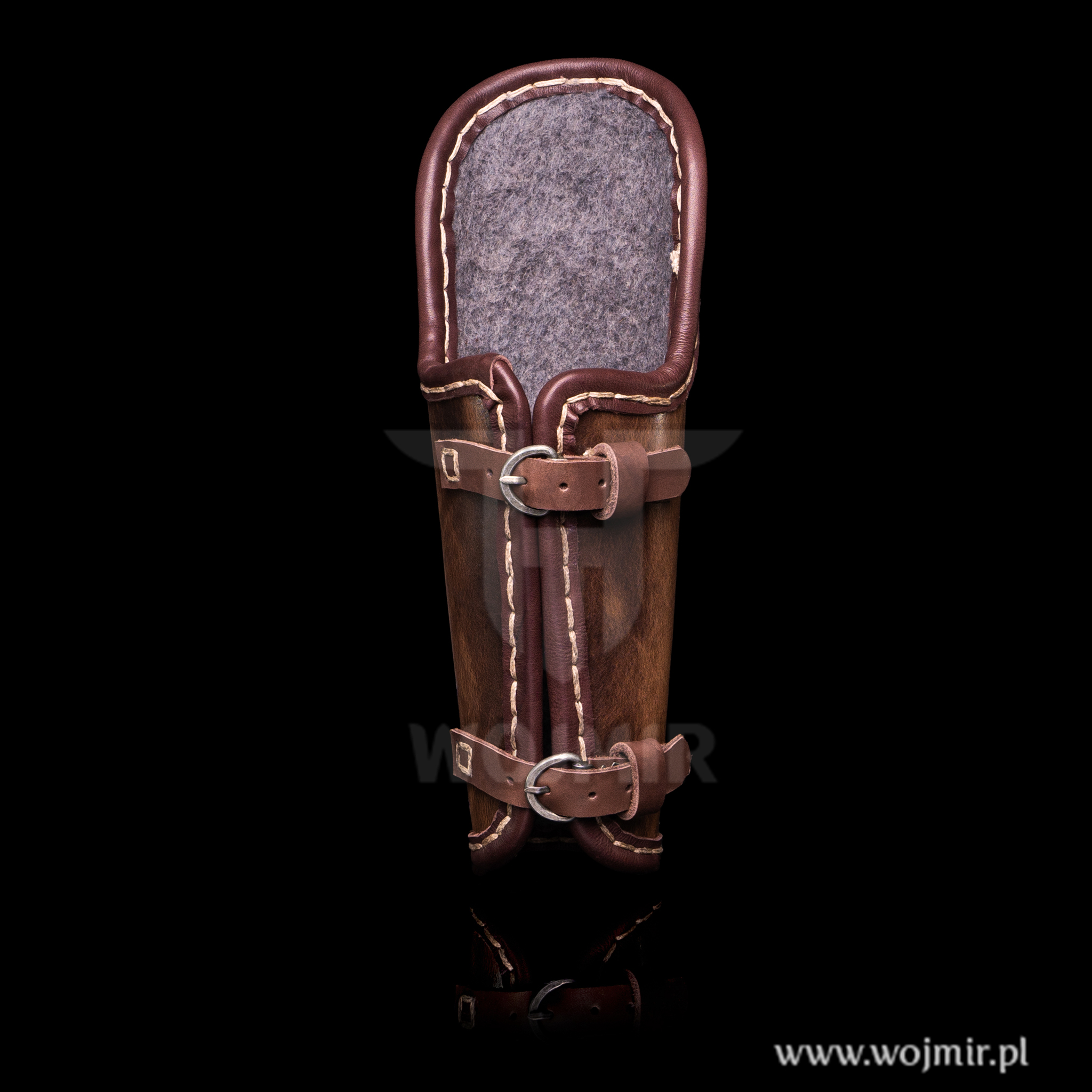 Karwasze do walki ręcznie wykonane ze skóry utwardzonej w naturalnym wosku pszczelim. Skóra o grubości aż 4,5-5 mm. Karawasze posiadają obszycia krawędzi, zapięcia na sprzączki, wyściółkę wełnianą oraz osłonę łokcia.