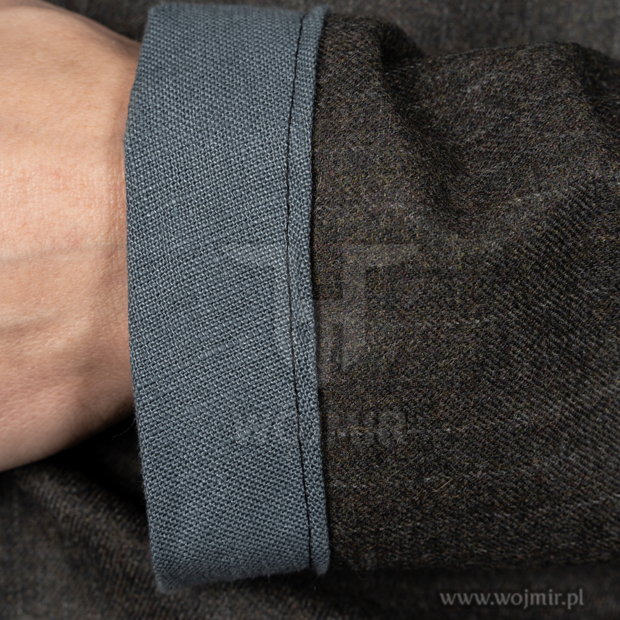 Tunika wikińska szyta w całości ze 100% wełny. Używam tylko najwyższej jakości materiałów. Materiał jest delikatny a krój tuniki nawiązuje do znalezisk. Koszula rozszerza się na dole dzięki zastosowaniu 4 klinów. Dwóch po bokach i po jednym z przodu i z tyłu. Posiada także kliny pod pachami.