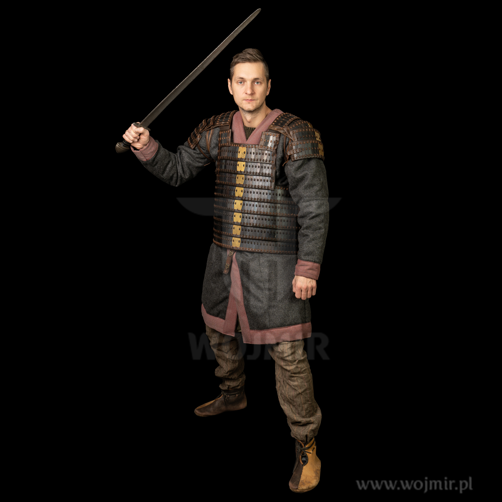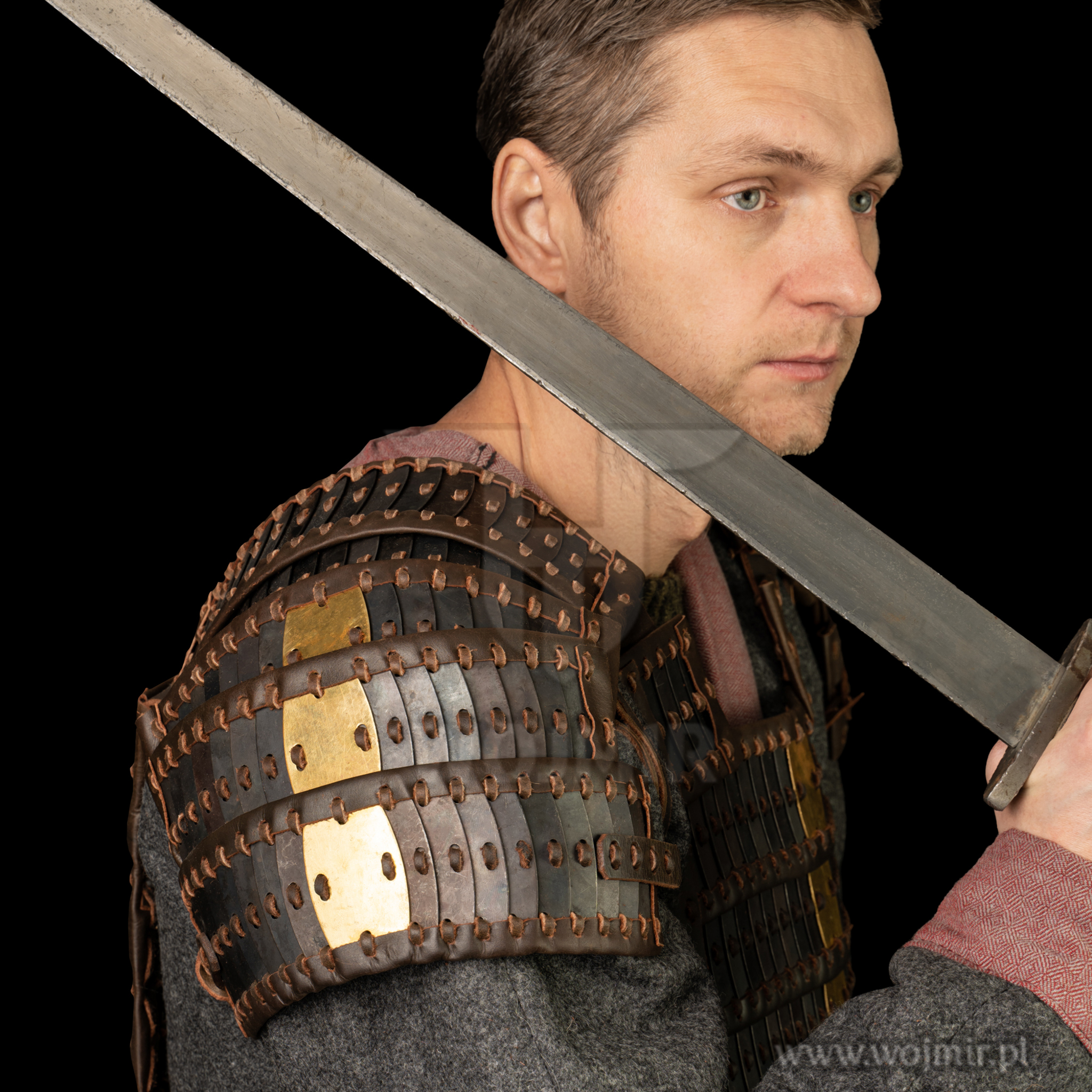 Zbroja lamelkowa, wykonana z płytek stalowych d-kształtnych o wymiarach 70/22mm. Grubość płytek 1mm, wystarczająca dla każdego rekonstruktora spragnione sprawdzić się podczas rekonstrukcji bitew. Wiązana mocnym rzemieniem. Posiada możliwość regulacji ramion. Świetna zbroja dla odtwórców epoki Wikingów.